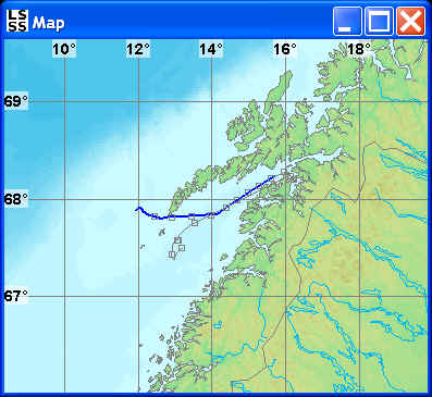 Firstly, a marker shows corresponding positions in the map and the echogram/bottom window.
